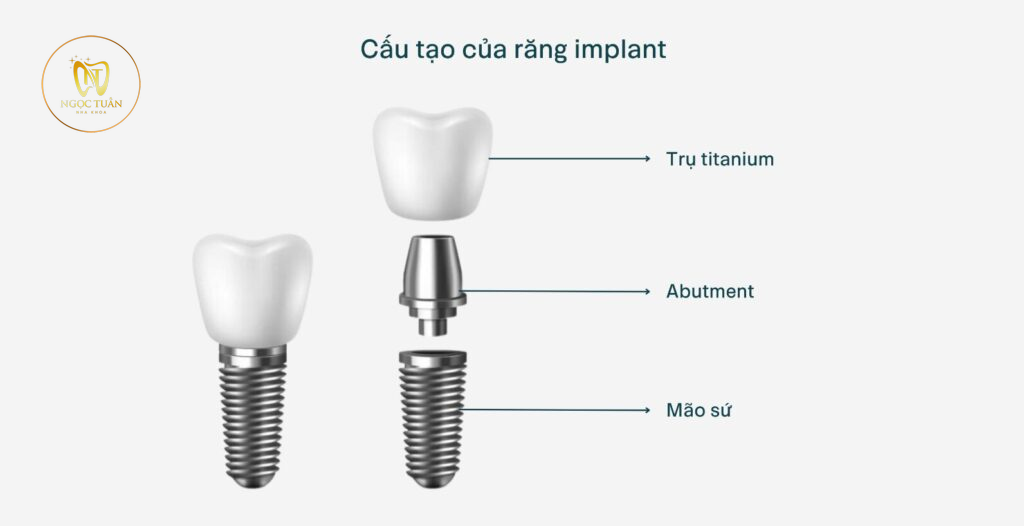 Răng Implant có cấu tạo bao gồm ba thành phần chính: